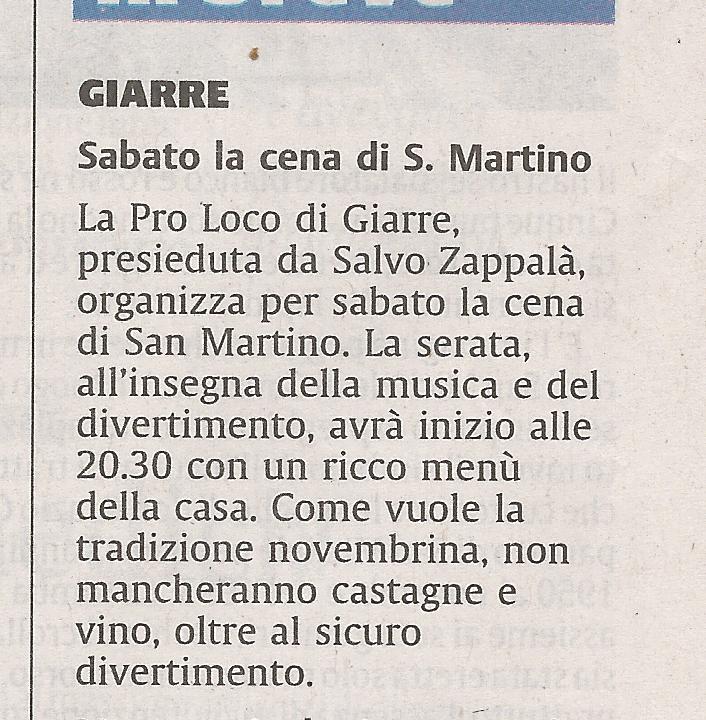 Sabato la Cena di S. Martino - La Sicilia Mercoledì 08 Novembre 2017